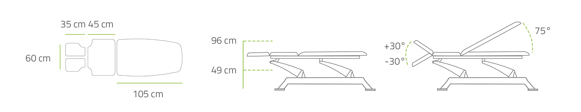 La table 3 plans FGS3287 a été spécialement conçue pour répondre aux exigences techniques des professionnels de la rééducation et des thérapies manuelles. Son plateau jambier réglable en proclive permet une mobilisation active ou passive des membres inférieurs, tandis que sa têtière écartable facilite l’accès aux cervicales et favorise une prise en charge précise en décubitus ventral. Le châssis en acier assure une excellente stabilité, même en manœuvres dynamiques, et le vérin électrique LINAK garantit un réglage en hauteur fluide et silencieux. Idéale pour les actes de kinésithérapie, d’ostéopathie ou de thérapie manuelle avancée, cette table combine ergonomie, fiabilité et confort thérapeutique.