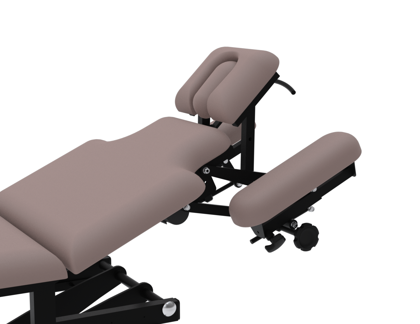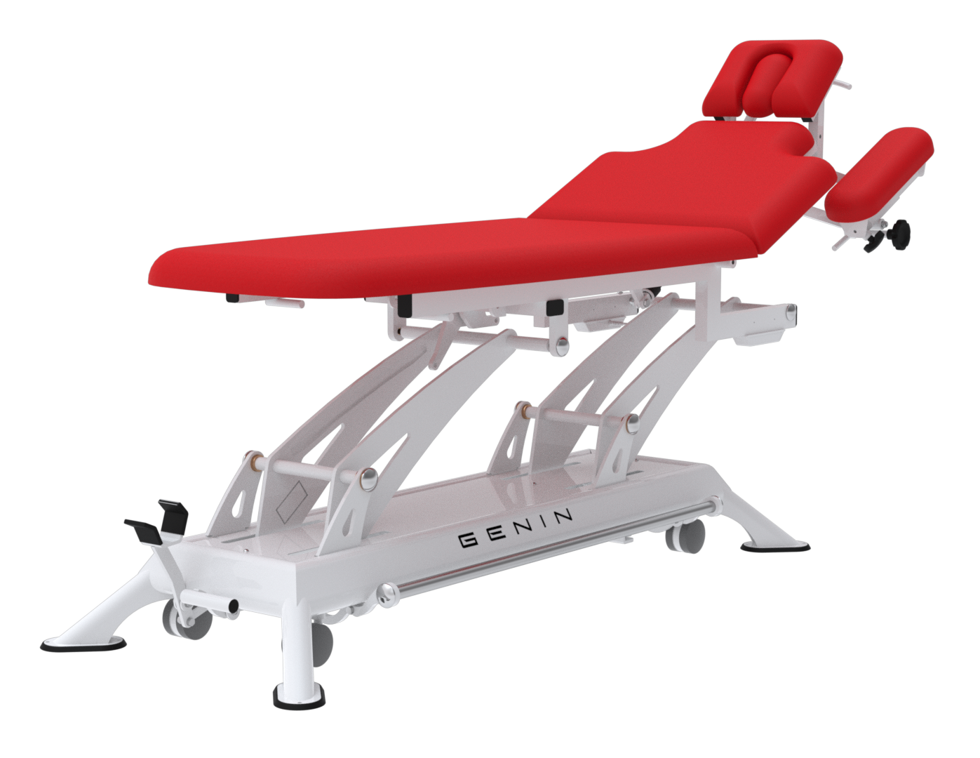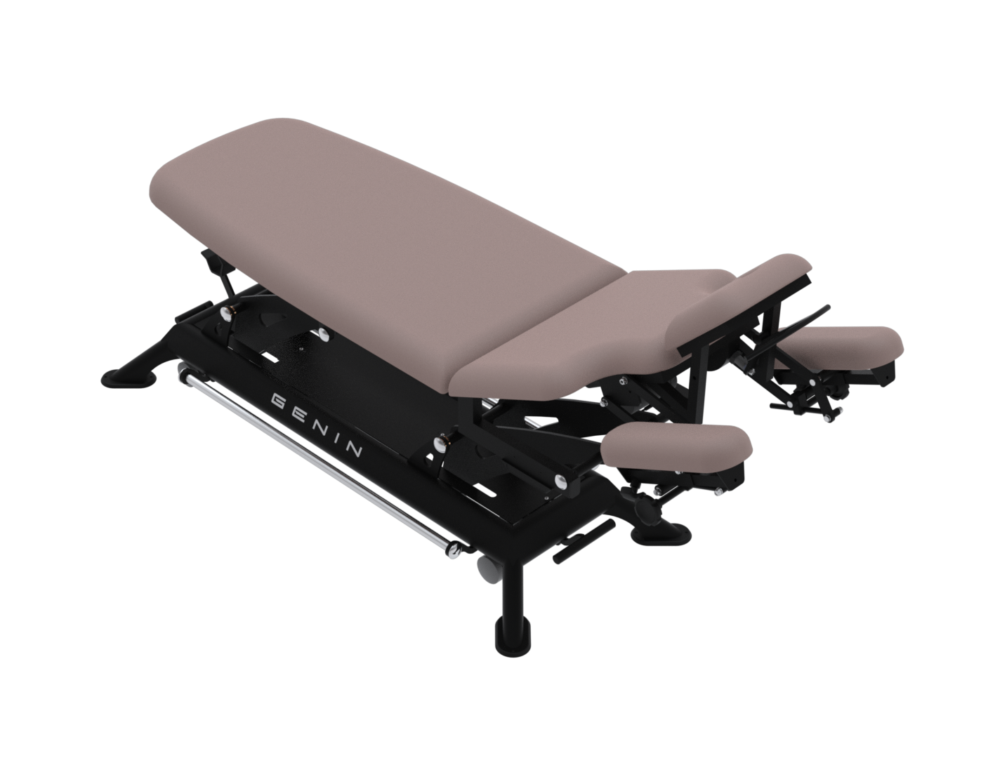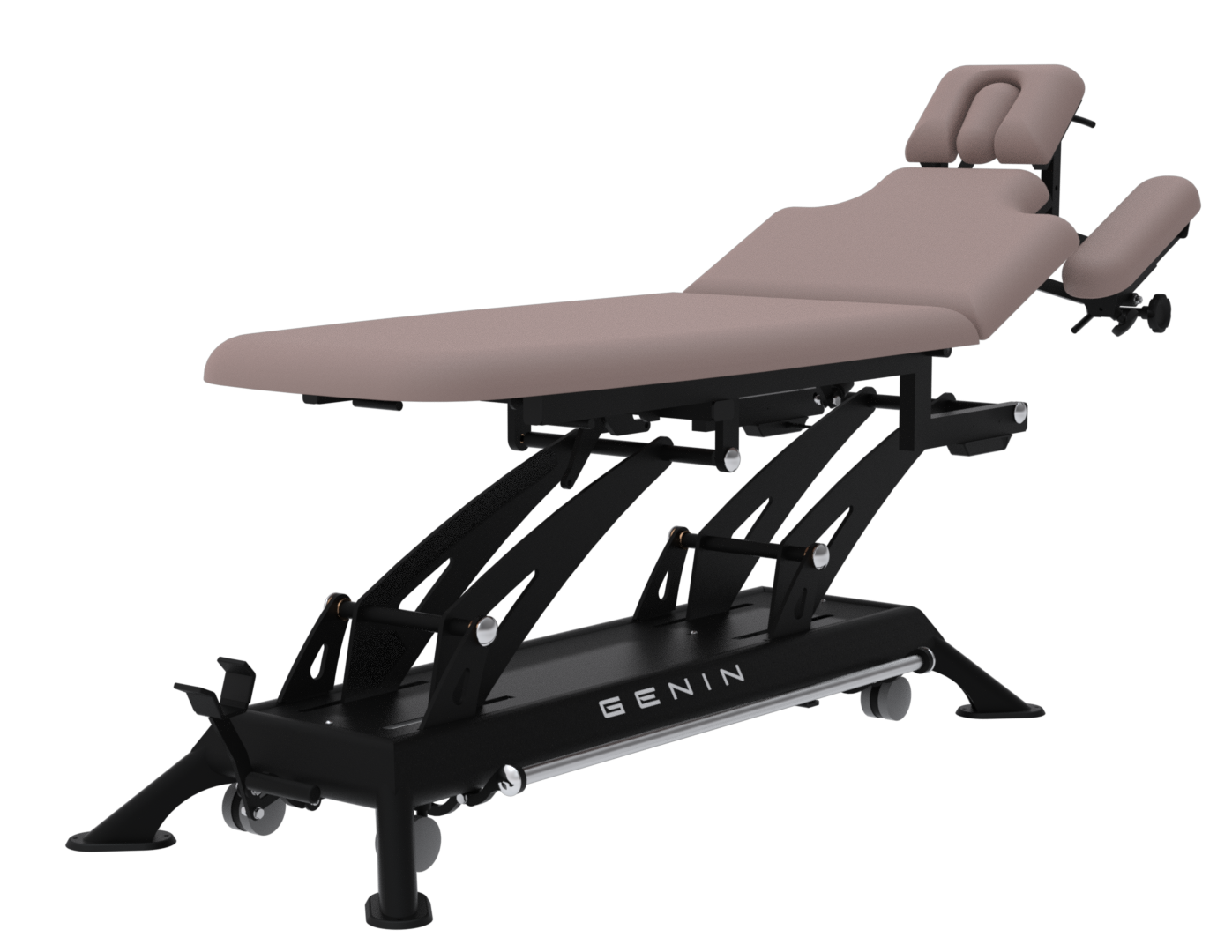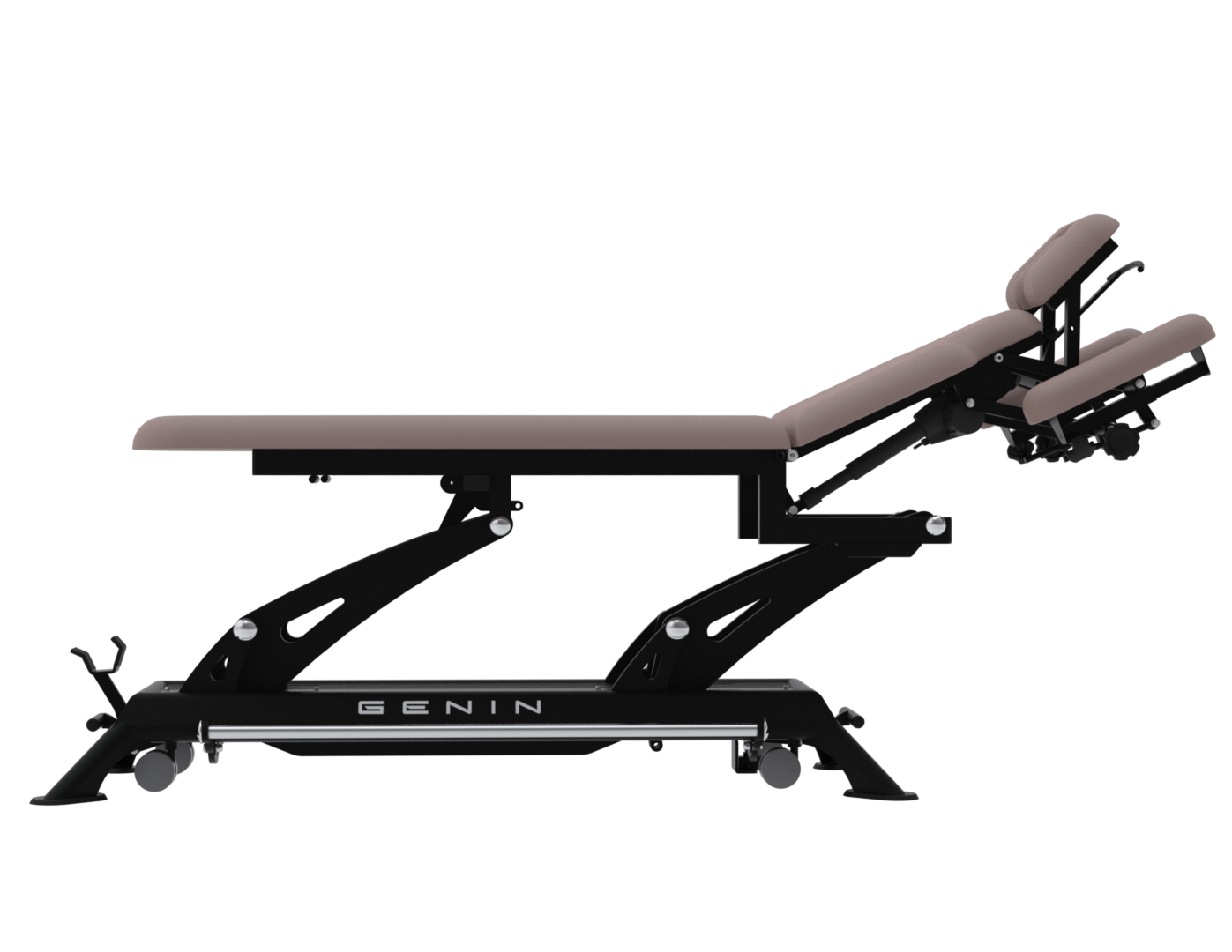 La table FGT3187 est une table de soin 3 plans avec têtière écartable et dossier réglable, conçue pour offrir une grande liberté de positionnement au praticien. Son plateau dorsal inclinable permet une mise en position semi-assise idéale pour les actes de rééducation respiratoire, les examens ou les soins nécessitant une posture redressée. La têtière écartable facilite l’accès aux zones cervicales tout en assurant un confort optimal en décubitus ventral. Équipée d’un vérin électrique LINAK pour un réglage précis et silencieux, et d’un châssis en acier assurant solidité et stabilité, la FGT3187 est un outil complet, adapté aux besoins quotidiens des kinésithérapeutes, ostéopathes et professionnels de santé.
