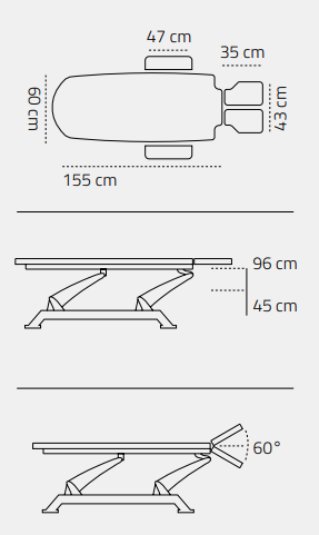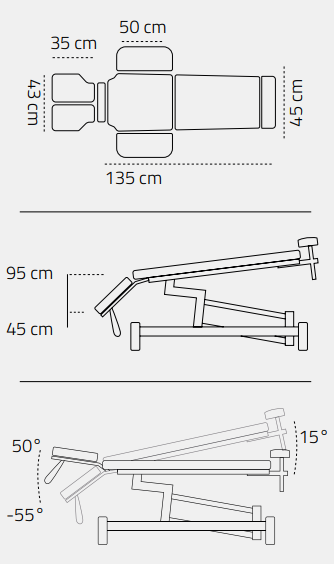 • Inclinaison plateau jambes : de 0° à 15°