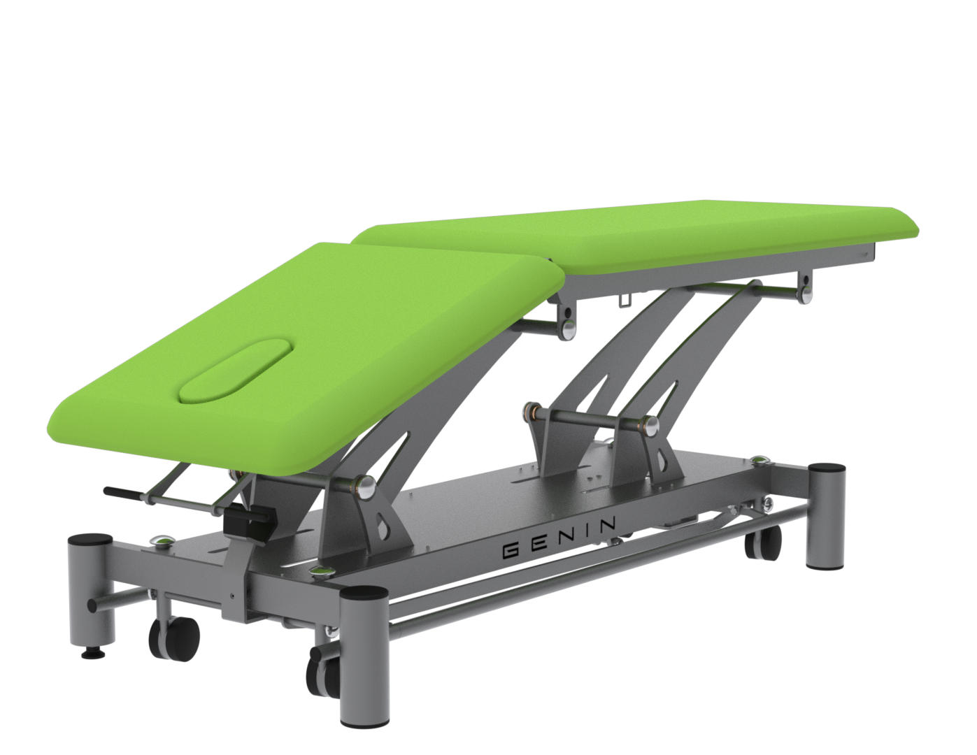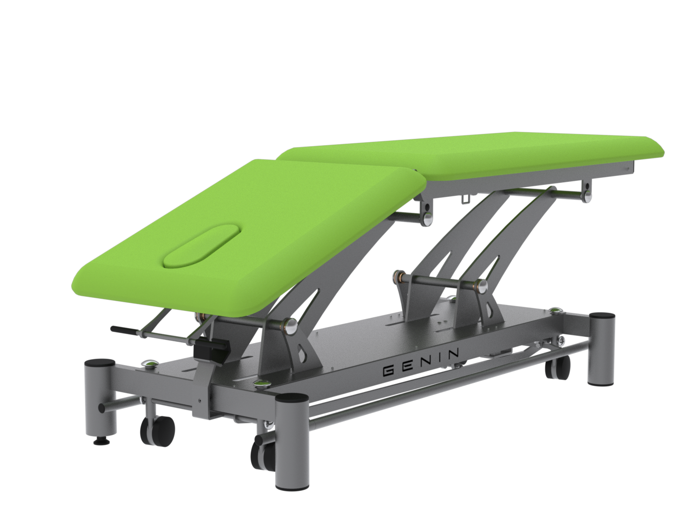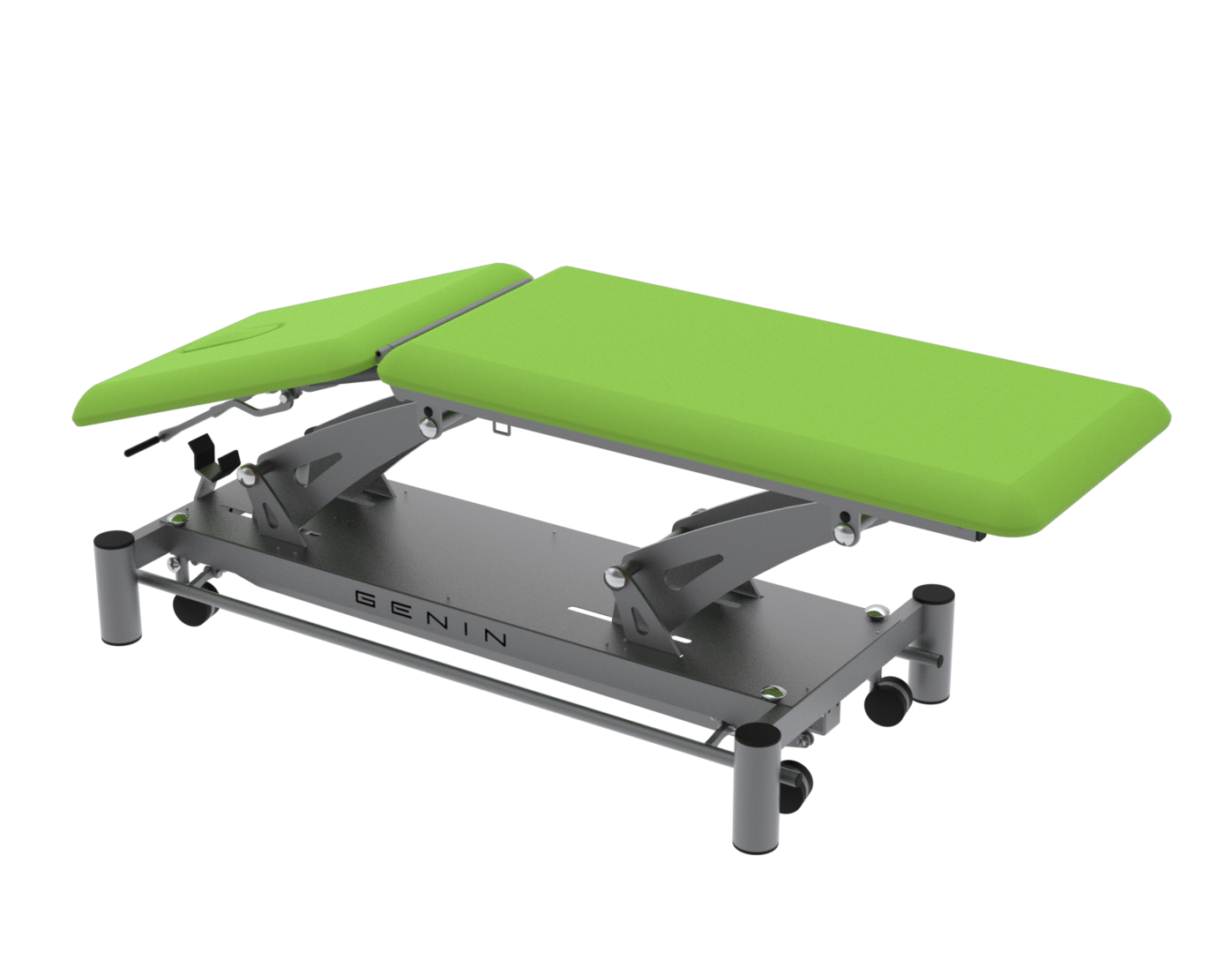 La FGT3172 est une table électrique 2 plans dotée d’un dossier réglable en proclive (+50°) et déclive (–35°), idéale pour les soins nécessitant des changements rapides de posture, comme la rééducation respiratoire, posturale ou circulatoire. Conçue pour un usage intensif, elle repose sur un châssis mécano-soudé en acier et un vérin LINAK 6000 N, assurant une élévation fluide et silencieuse. Elle est livrée de série avec des roulettes escamotables, des barres périphériques, un trou visage, ainsi qu’une sellerie Bultex dynamique (53 kg/m³) montée sur mousse de 4 cm, résistante aux désinfectants. Les options comme le dérouleur papier, l’option bariatrique (jusqu’à 200 kg) ou le passage lève-malade (garde au sol 15 cm) permettent d’adapter la table aux exigences spécifiques de chaque cabinet. Un équipement fiable, confortable et personnalisable, pensé pour les professionnels du soin.