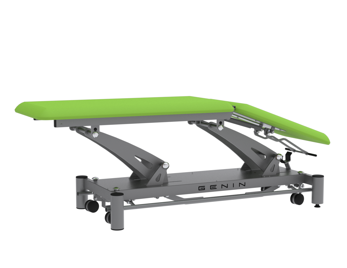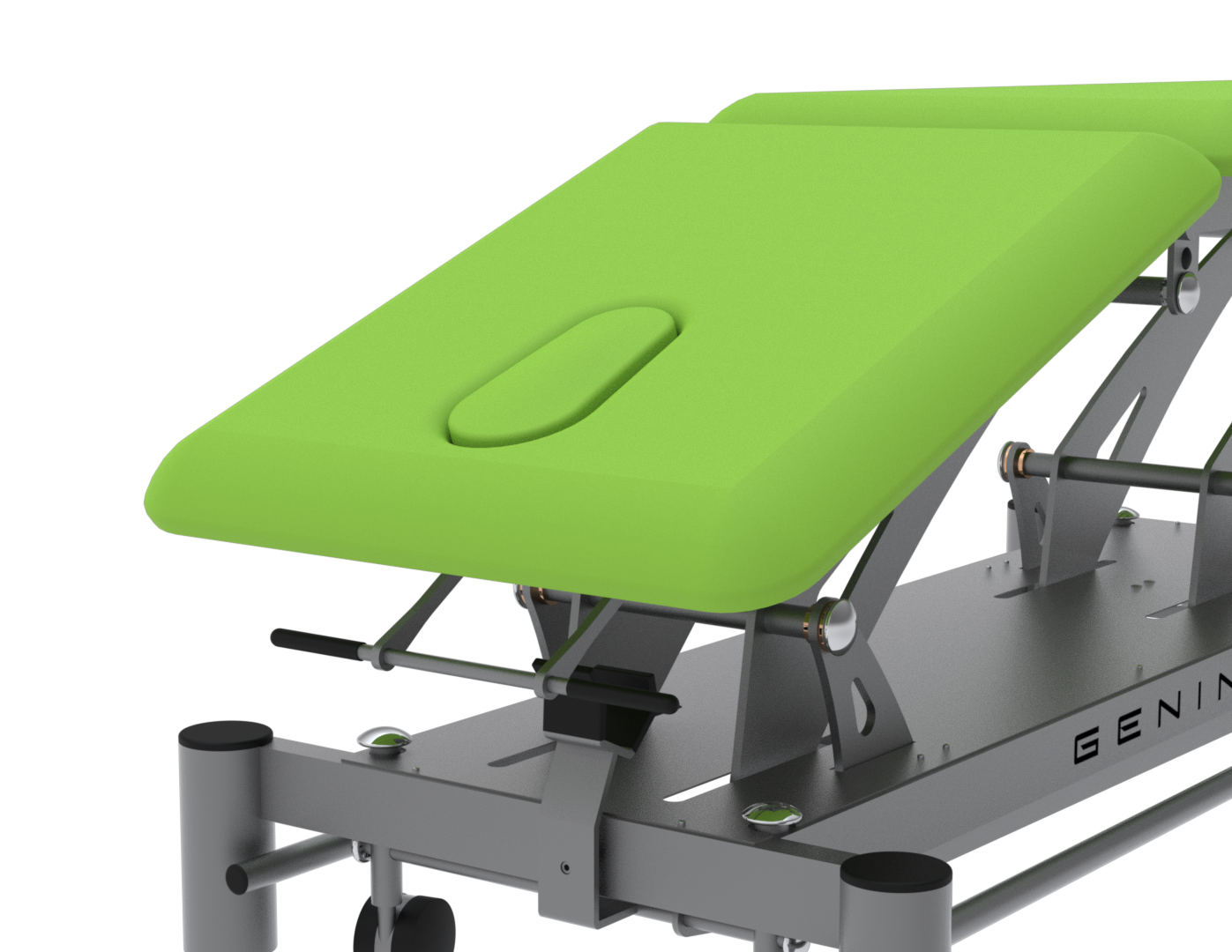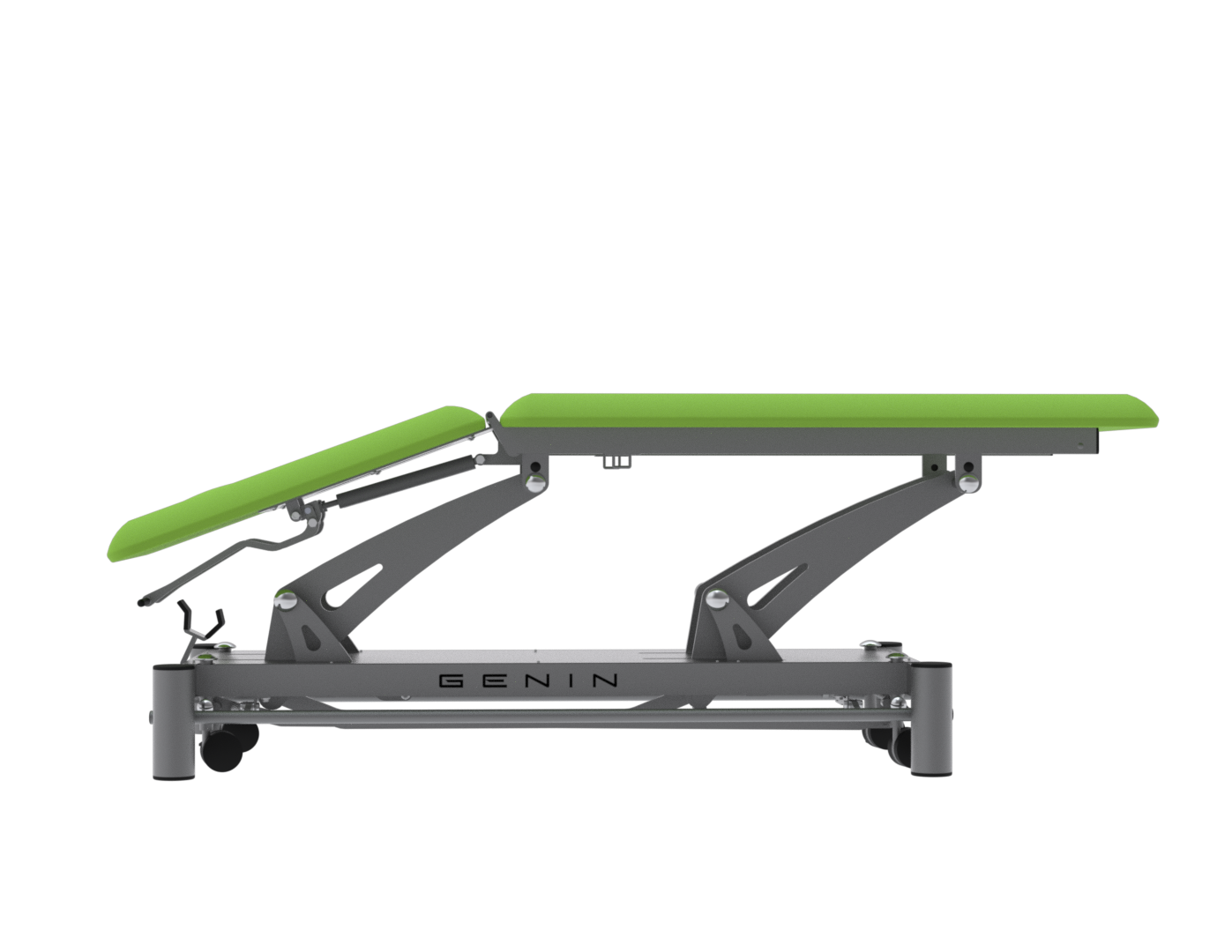 La FGT3172 est une table électrique 2 plans dotée d’un dossier réglable en proclive (+50°) et déclive (–35°), idéale pour les soins nécessitant des changements rapides de posture, comme la rééducation respiratoire, posturale ou circulatoire. Conçue pour un usage intensif, elle repose sur un châssis mécano-soudé en acier et un vérin LINAK 6000 N, assurant une élévation fluide et silencieuse. Elle est livrée de série avec des roulettes escamotables, des barres périphériques, un trou visage, ainsi qu’une sellerie Bultex dynamique (53 kg/m³) montée sur mousse de 4 cm, résistante aux désinfectants. Les options comme le dérouleur papier, l’option bariatrique (jusqu’à 200 kg) ou le passage lève-malade (garde au sol 15 cm) permettent d’adapter la table aux exigences spécifiques de chaque cabinet. Un équipement fiable, confortable et personnalisable, pensé pour les professionnels du soin.