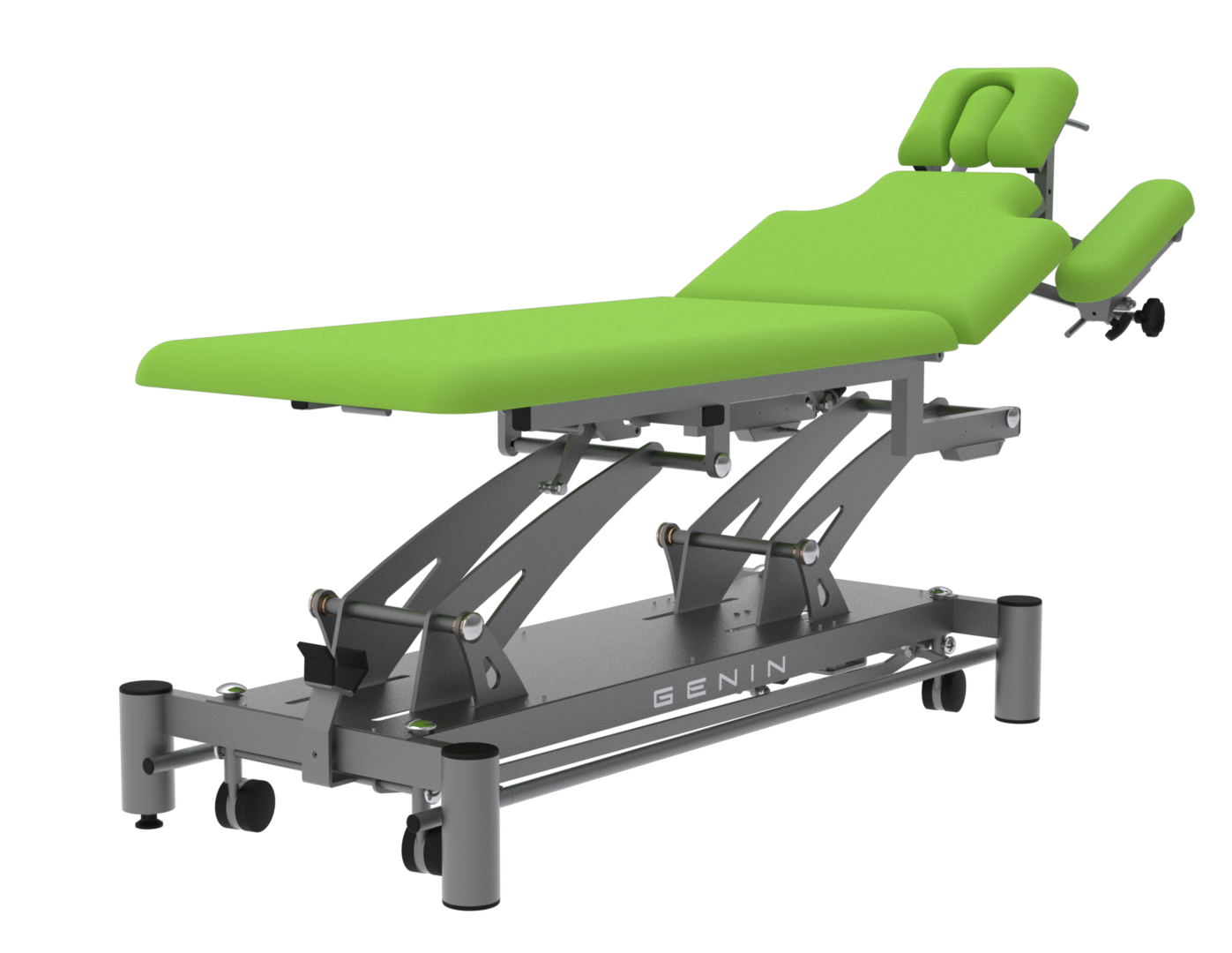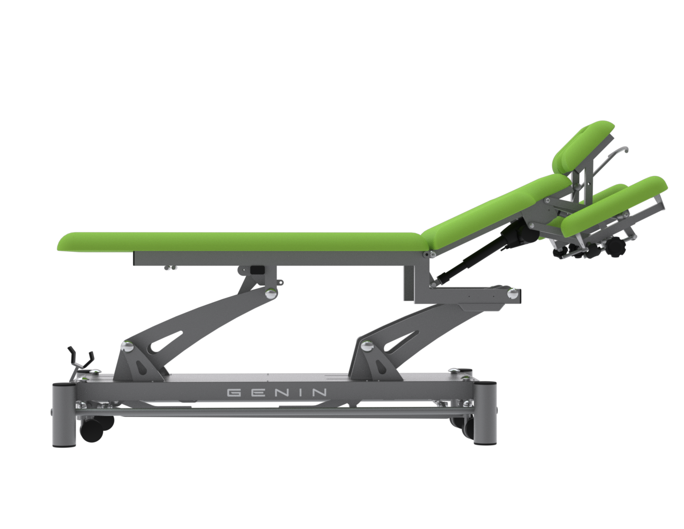 La table FGT3187A a été conçue pour offrir une réponse complète aux besoins des professionnels en rééducation et thérapies manuelles. Grâce à sa configuration en 3 plans, elle permet une grande variété de positionnements thérapeutiques. Le dossier réglable s’adapte parfaitement aux soins en position semi-assise, tandis que le plateau jambier inclinable en proclive facilite les postures de drainage ou les exercices circulatoires. Sa têtière écartable améliore l’accès aux cervicales et assure un bon confort en décubitus ventral. Dotée d’un vérin électrique LINAK pour un ajustement fluide et précis, et d’un châssis en acier garantissant robustesse et stabilité, cette table est parfaitement adaptée à un usage intensif en cabinet ou en centre spécialisé.