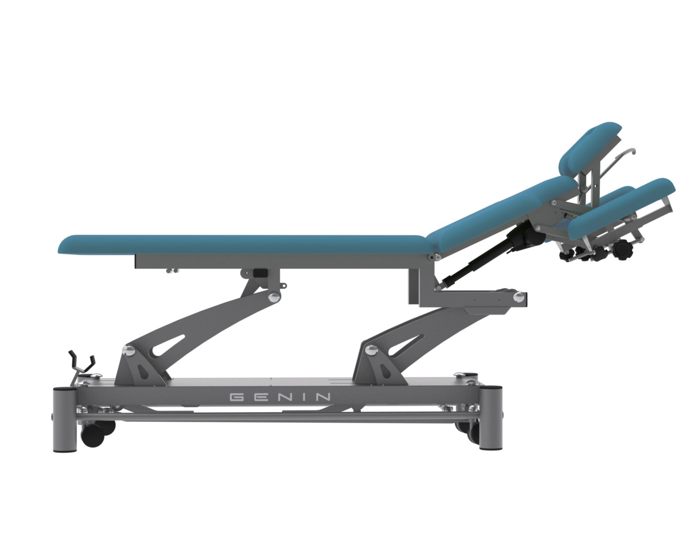 La FGT3172 est une table électrique 2 plans dotée d’un dossier réglable en proclive (+50°) et déclive (–35°), idéale pour les soins nécessitant des changements rapides de posture, comme la rééducation respiratoire, posturale ou circulatoire. Conçue pour un usage intensif, elle repose sur un châssis mécano-soudé en acier et un vérin LINAK 6000 N, assurant une élévation fluide et silencieuse. Elle est livrée de série avec des roulettes escamotables, des barres périphériques, un trou visage, ainsi qu’une sellerie Bultex dynamique (53 kg/m³) montée sur mousse de 4 cm, résistante aux désinfectants. Les options comme le dérouleur papier, l’option bariatrique (jusqu’à 200 kg) ou le passage lève-malade (garde au sol 15 cm) permettent d’adapter la table aux exigences spécifiques de chaque cabinet. Un équipement fiable, confortable et personnalisable, pensé pour les professionnels du soin.