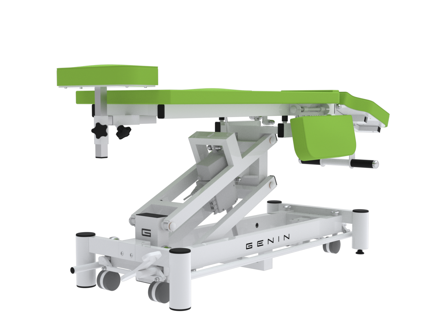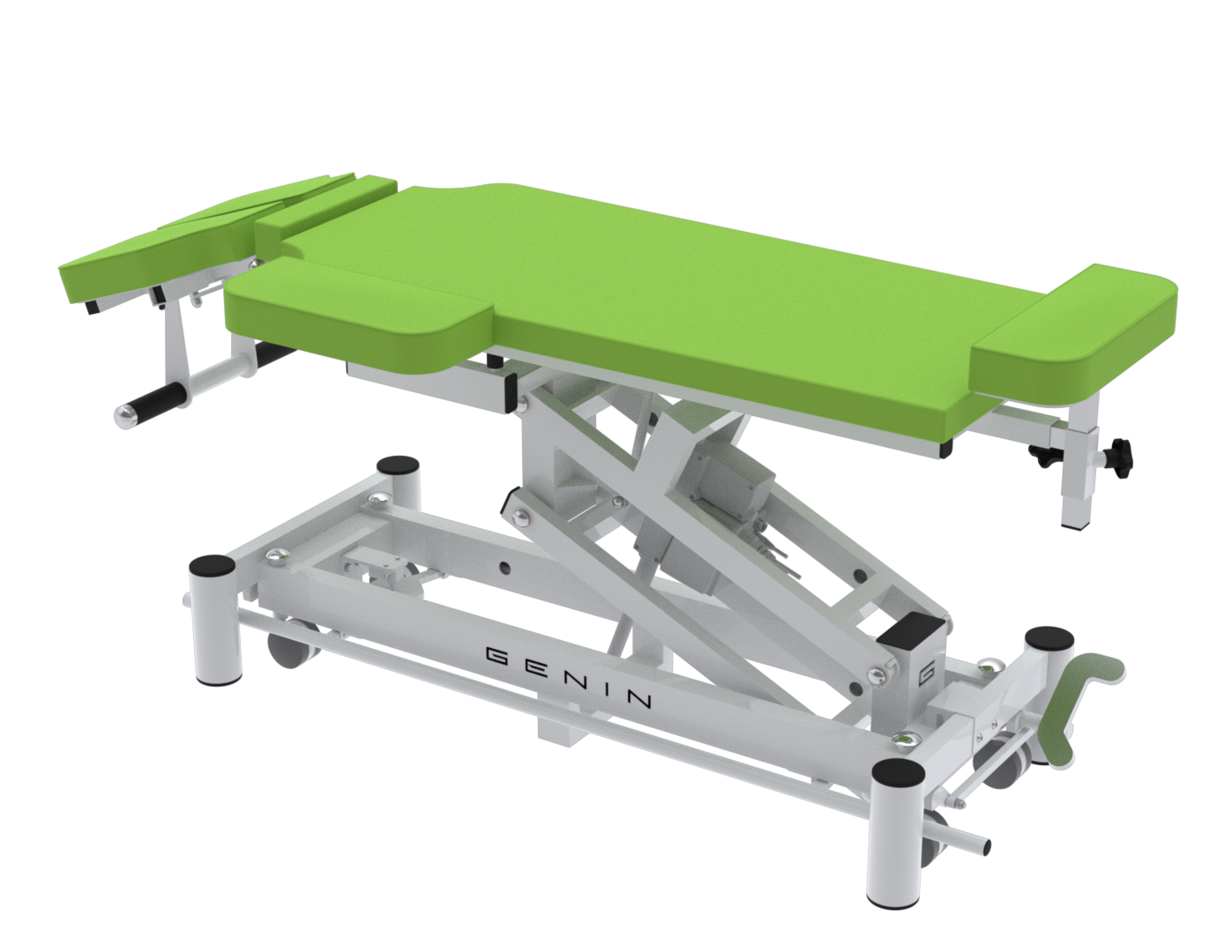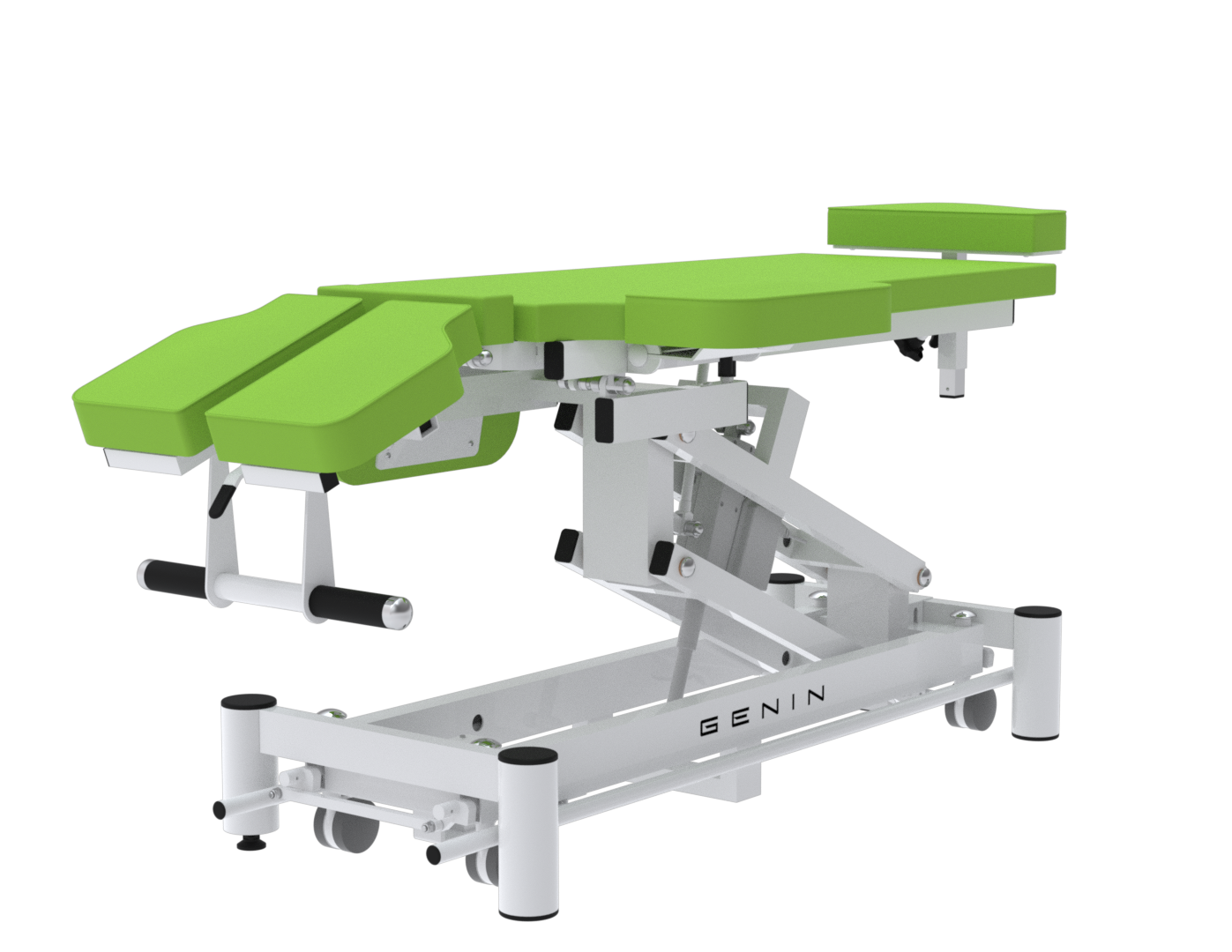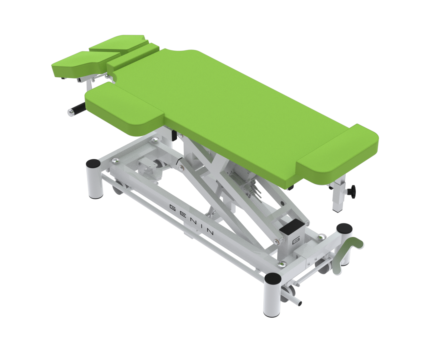 Table d’ostéopathie de la gamme ATOLL, conçue pour une plus grande proximité avec le patient et pour des manipulations plus efficaces, notamment grâce à la têtière écartable, aux repose-bras repliables ou à la cyphose électrique. La couleur de la sellerie et de la structure de cette table sont personnalisables.